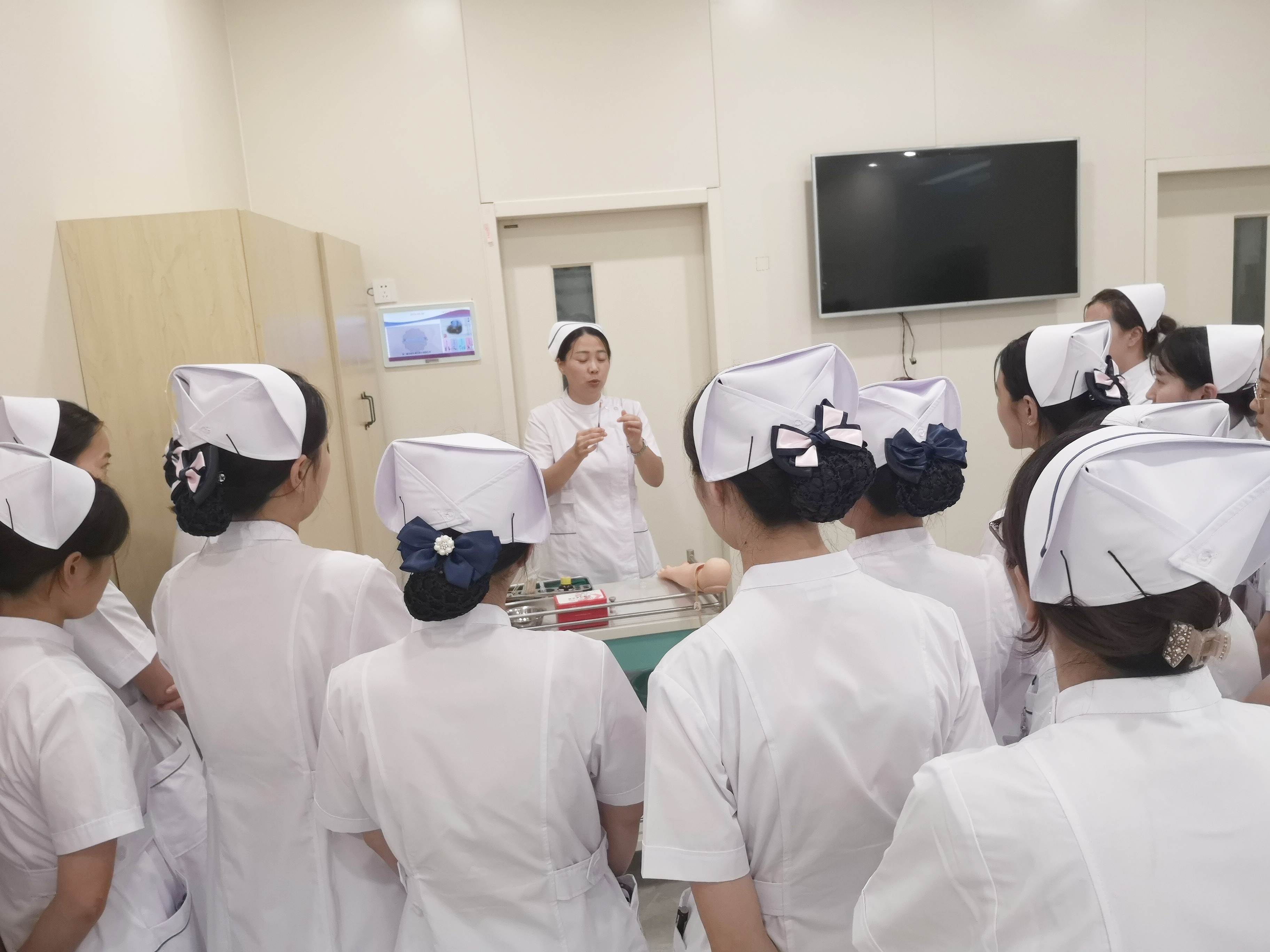 为全面提高我院护理人员综合素质,更好的实施优质护理,护理部在岑爱萍副院长的领导下紧抓护士培训,对全院护士进行定期理论授课,技能培训,以夯实基础护理为切入点,力求全面提升护理工作质量。护士们以饱满的热情投入到培训中。