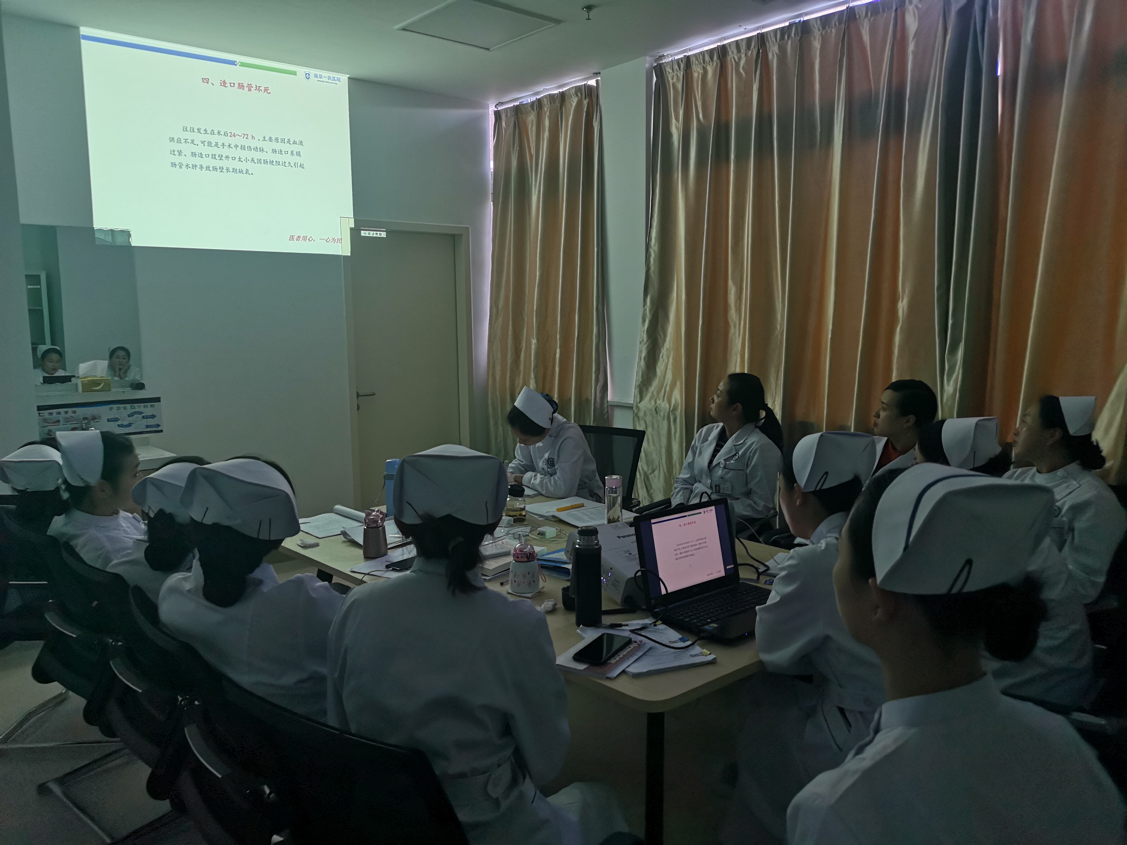 内镜室沈晶晶护士长向护士介绍内窥镜治疗的流程和注意事项