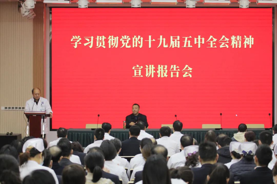 2020年12月12日中午,我院党总支书记刘大林同志给全体党员讲授了“学习贯彻中国共产党十九届五中全会精神,谋划好医院十四五发展规划和中长期发展蓝图”的专题党课,党课由医院党总支副书记李伟彦同志主持。