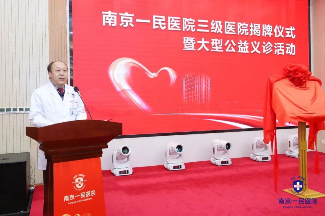 江宁区卫健委主任姜立波首先对我院的成功晋升表示热烈祝贺,此次成功挂牌三级老年病医院,不仅是一民医院的荣誉,更是江宁卫生健康事业发展的一件大好事,标志着江宁区着力打造的“四个520”医疗卫生服务体系更加完善,江宁人民的家门口又多了一所高品质的三级民营医院,必将为周边群众、特别是老年朋友带来福音和优质服务。一直以来,一民医院始终主动承担社会责任,不断提高医疗服务品质,为江宁及周边群众健康保驾护航,为江宁医疗服务行业注入了新的强劲活力。在抗击新冠疫情的特殊时期,一民的医护人员积极投身抗疫一线,圆满完成了区委区政府下达的任务。新的起点带来新的机遇,希望一民医院始终秉承患者至上、追求极致的价值观,充分发挥社会效益、乘势而上,开拓创新,以舒适的环境、一流的服务、良好的信誉和精湛的技术,赢得更多患者们的认可和信赖。