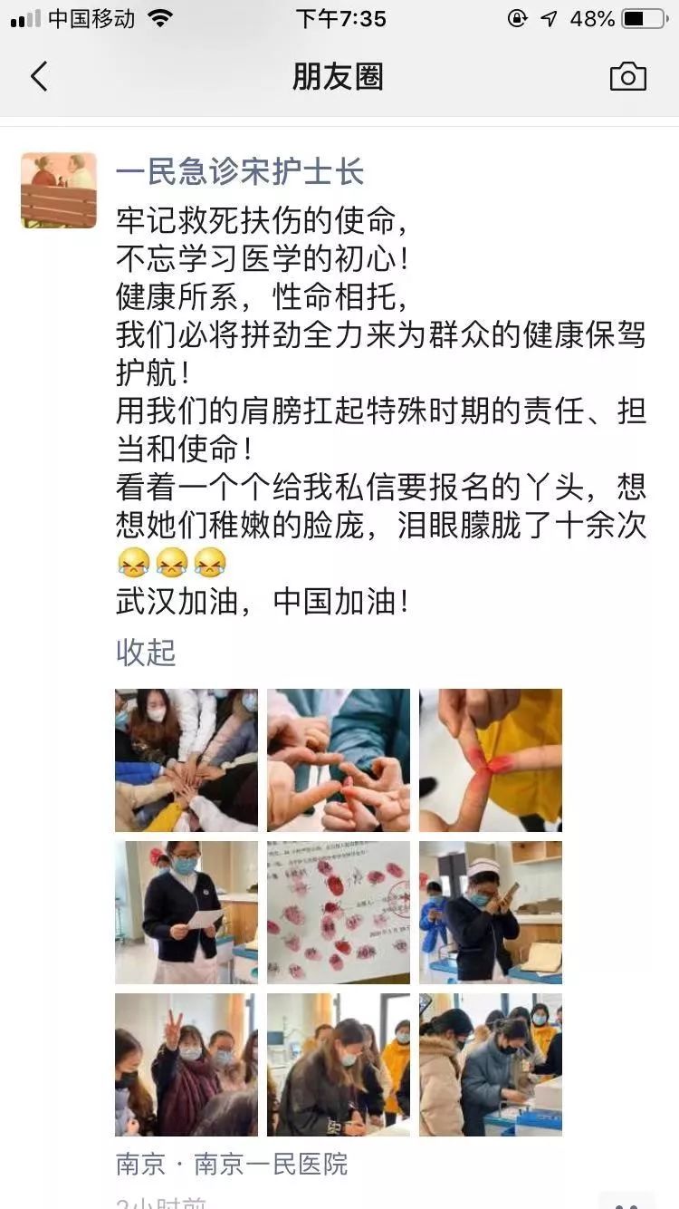 在我身边有这样的一支队伍,他们告别团聚的家人,毅然的回归到自己的工作岗位,投身于疫情防控工作中,他们就是南京一民医院急诊医学科团队。 当听到医院集结的号声,全体人员迅速集结,全员到岗到位,主动请战要求进入疫情防控一线,庄严而神圣的请战志愿书上,每一个姓名、手印,代表的都是一份坚定的决心和无畏的勇气!