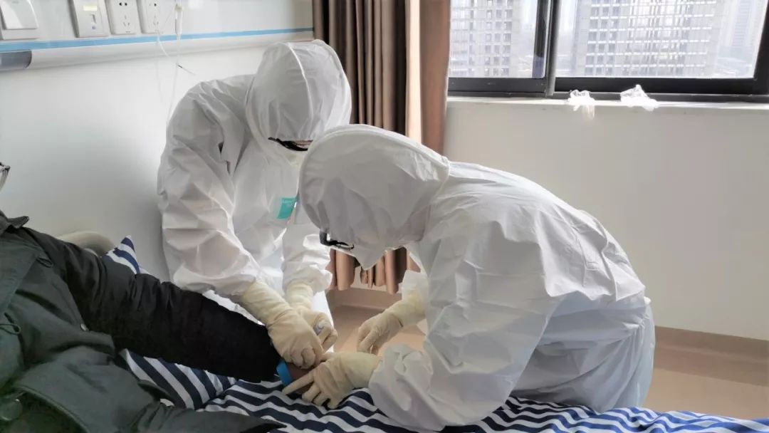 穿着厚厚的隔离衣、防护服,带着防护口罩和眼罩,手上带着两层手套,脚上套着鞋套,全副武装后平时轻车熟路的静脉穿刺变得十分困难;为节省防护装备,担心中途去厕所,她(他)们没敢多吃,也没敢喝水,日日夜夜为患者守护,她们也从未喊过累,只为医者用心,一心为民。