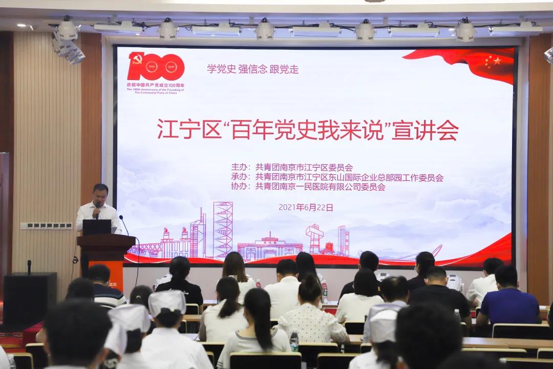 为深入学习贯彻习近平新时代中国特色社会主义思想,推动党史学习教育工作扎实开展,引导广大团员青年学史明理、学史增信、学史崇德、学史力行,努力营造“一起学党史、一起讲党史”的浓厚氛围。6月22日,在我院召开了由江宁团区委主办、东山总部园团工委承办、南京一民医院团委协办的“百年党史我来说”宣讲会。